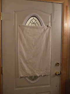 (The inspiration for new curtains--yes, it is a pillowcase. Held up by magnets.)